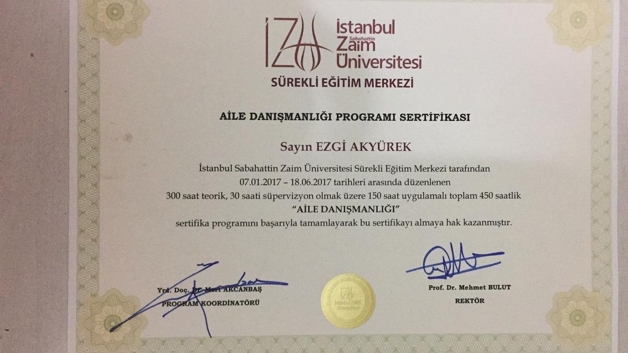 İstanbul Sabahattin Zaim Üniversitesinden Aile Danışmanlığı eğitimini tamamlamıştır.. Petad eğitim kurumundan Yrd. Doç. Dr Mert Akcanbaştan Çocuk İhmal Ve istismar, Travma Sonrası Stres eğitimini almıştır. Akademik eğitimlerin yanı sıra bir çok kurumdan mesleki alanda terapi eğitimleri almıştır.